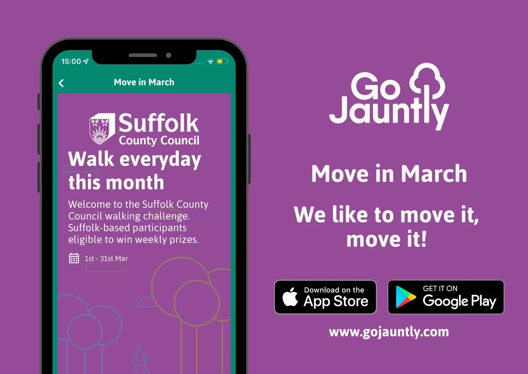 Get yourself moving this month with our NEW Move in March walking challenge. Join us and Suffolk County Council in walking at least 22 minutes each day in March.