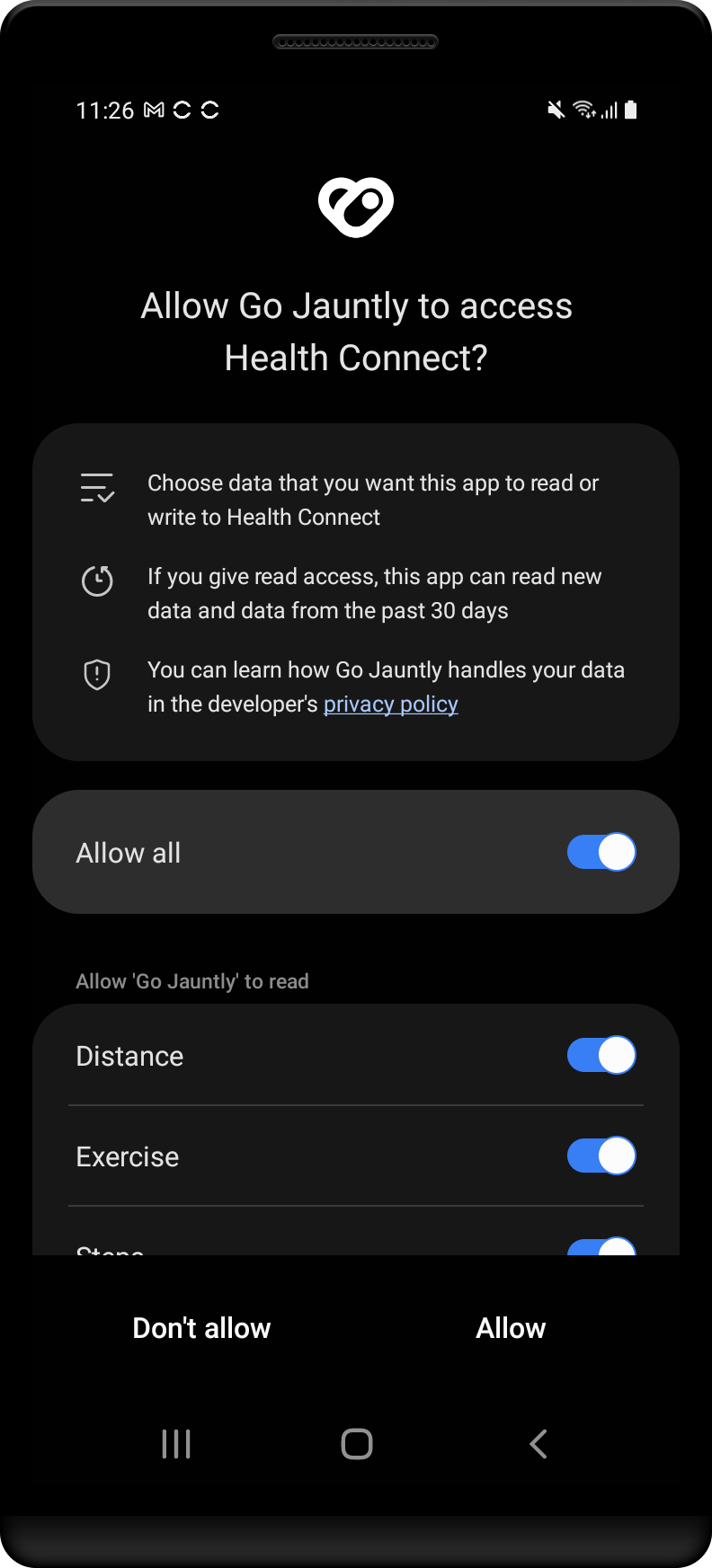 Here is a comprehensive guide to connecting Android’s ‘Health Connect’ with the Go Jauntly app.